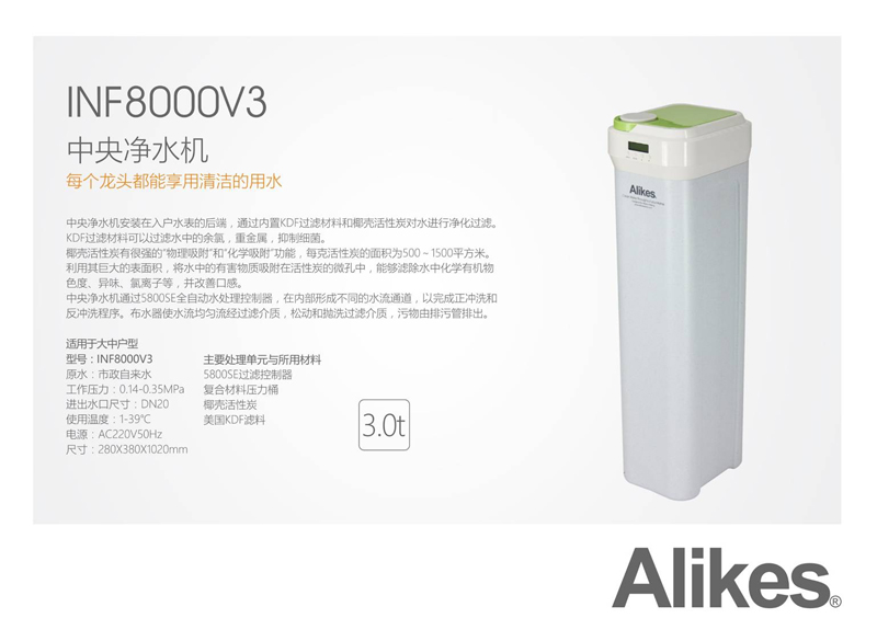 中央凈水機是將凈水控制器與玻璃鋼壓力桶結(jié)合,通過內(nèi)置的KDF過濾材料和椰殼活性炭對水進行凈化的水處理設(shè)備。可去除水中的泥沙、******、鐵銹、懸浮物、有害重金屬、余氯、異色、異味、致癌物質(zhì)三氯甲烷等。是家庭用水更清潔、更健康。