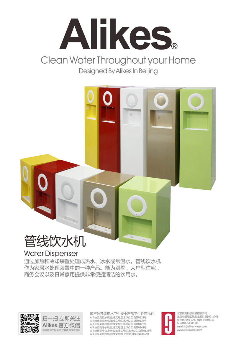 Alikes管線機可配合終端凈水機使用,也可以利用自帶的濾芯(選配)進行水處理凈化。凈化后的水經(jīng)PE輸水管連接到機內(nèi)的密閉儲水罐,通過加熱和冷卻裝置處理成熱水、冰水或常溫水。管線飲水機作為家居水處理裝置中的一種產(chǎn)品,能為別墅、大戶型住宅、商務會議以及日常家用提供非常便捷清潔的飲用水。